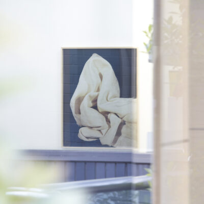 サラ・コナウェイは、独創的な遊び心と緊張感に満ちた表現形式をもつ、非常に美しい写真のイメージを制作するために、日常にあるオブジェクトを用います。「物質性」や「実体性」を提示する写真の性質を超越し、参照する美術史を模倣することなく、コナウェイの作品はそこに新たな居場所を見つけようとしています。本展で展示する作品群には、コナウェイの作品に繰り返しあらわれるモチーフ、布地の折り目や皺が登場します。これらはジャン・ロレンツォ・ベルニーニが彫刻した布地の表現から、ヨーゼフ・ボイスが自身で行ったパフォーマンス「I Like America and America Likes Me」において、ウールの布を身体に巻きつけた行為に至るまでの、布を巡る美術史の物語に沿うものと言えるでしょう。