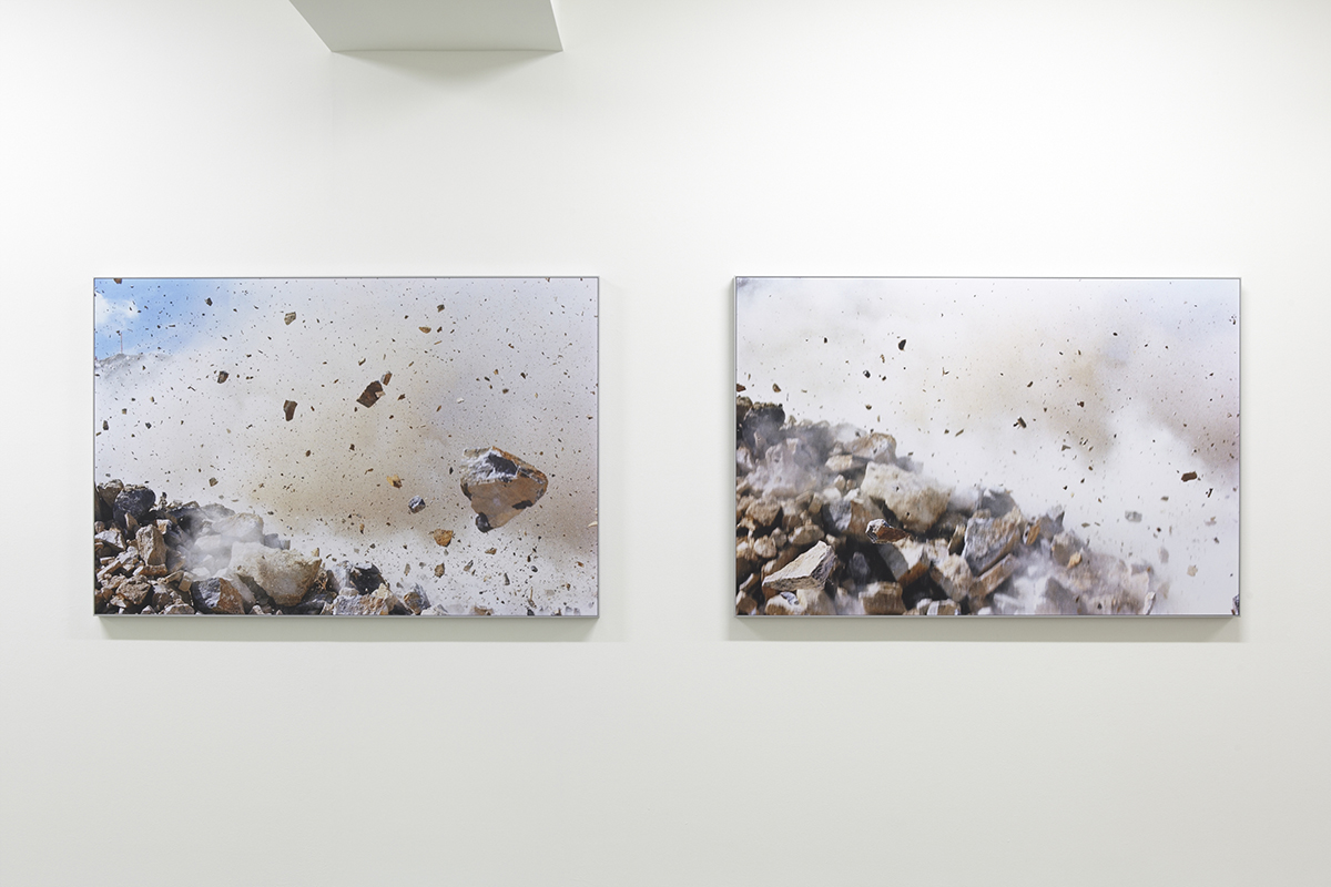 「Blast」は1995年に撮影が開始され、「アナザー・リアリティー‐現代写真の動向」展(川崎市市民ミュージアム、1995年)にて展示されて以来、国内外の多くの展覧会で発表される傍ら、撮影が続けられてきました。私たちが築き上げてきた都市や自然、そしてそれらを形作る概念を精緻に検証し、時にはそれらを詩的に展開させるような作品を発表してきた畠山にとって、爆破する岩石の飛散方向を正確に占う発破技師とともに行われる「Blast」の撮影は、写真の魅力をその技術の根本にまで立ち返りつつ再考させるような、掛け替えのないものであったと言えます。2011年3月11日に発生した東日本大震災は畠山に重大な影響を与え、写真を制作していくことにも従来とは異なる態度で臨まざるをえないような状況をもたらしました。この状況の中で「Blast」をまとめ上げるという行為には、今後長い時間をかけて検証されるべき重要な意義が孕まれていると言えるでしょう。
