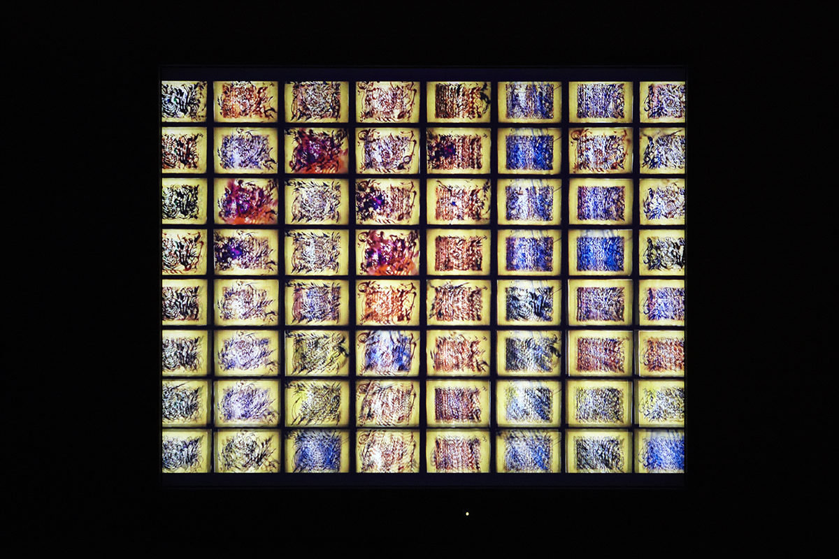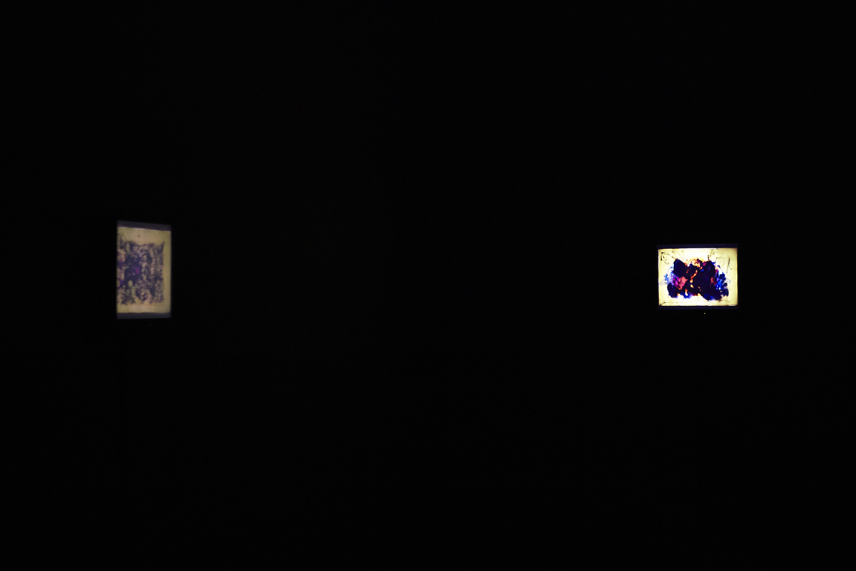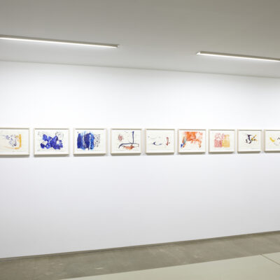 これまで石田は、「部屋/形態」(1999年)、「椅子とスクリーン」(2003年)、「海の壁 生成する庭」 「海の映画」(2007年、横浜美術館公開制作)、「リフレクション」(2009年)、「白い部屋」(2012年)などのドローイングアニメーション作品において、おもに絵具を使用していましたが、チョークを使った試みは今回の作品が初めてとなります。そして、水で描くという行為は、東京都現代美術館で展示された沖縄の浜辺に絵を描くドキュメンタリー「浜の絵」(2011年)や、夏のコンクリートの地面に即興で絵を描いていた「夏の絵」(2010年)などの作品で試された技法であり、その発展といえるでしょう。また、原稿用紙に描かれたドローイングを透過光で組み合わせる極めて実験的な新作もあわせて発表致します。