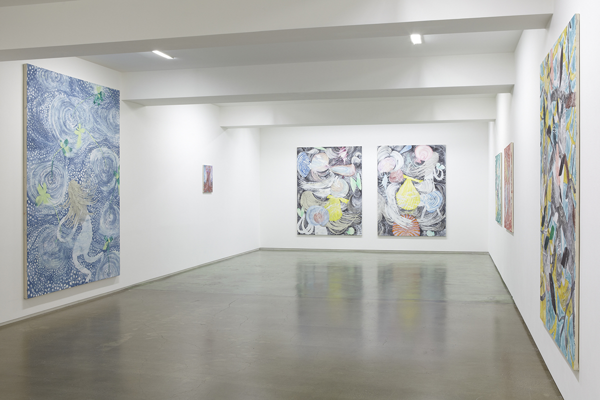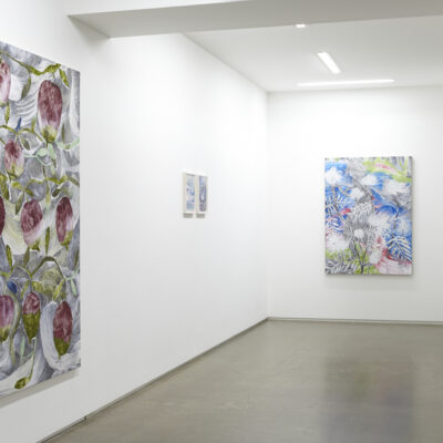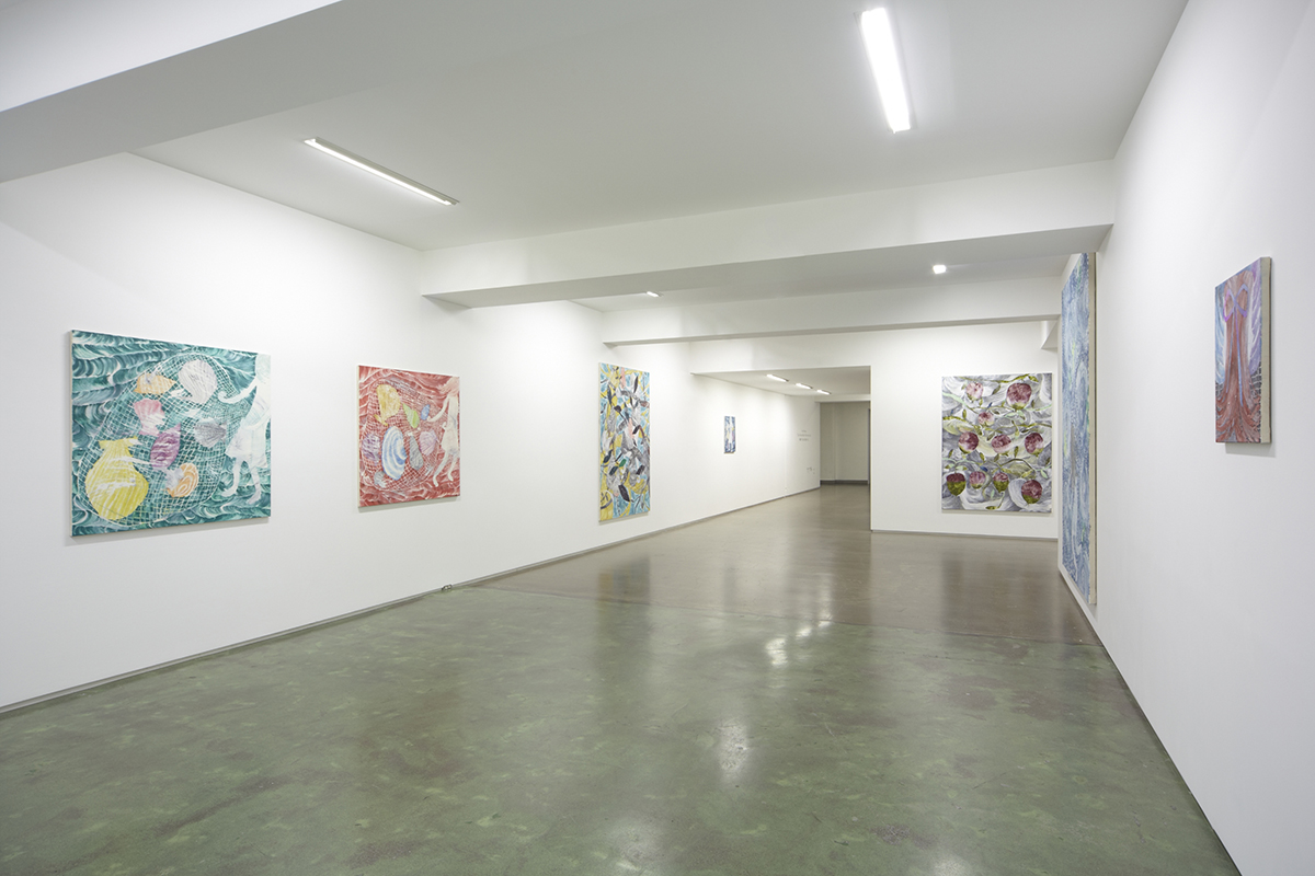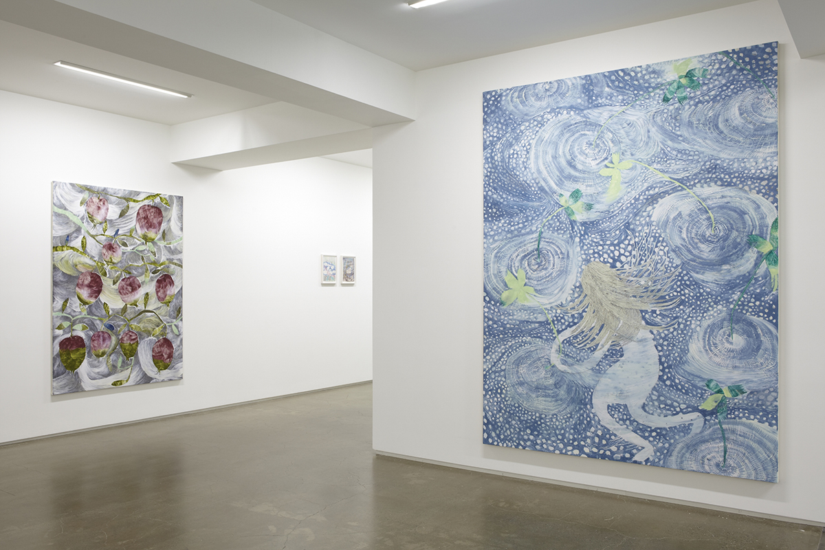 村瀬はこれまでも展覧会を重ねるごとに新たな境地を切り開いてきました。水の中や洞窟、森の中といった様々な情景とその中心に据えられる少女像が、繊細さと力強さを併せ持つ筆致と地と図が反転したような独特の構図によって描かれるペインティングは、極めてユニークな作品世界を築き上げてきました。また、近年では、これまでの作品が持っていた性質に加えて、キャンバスに描くことそのものの可能性を追求する方向へも向かっています。高い技術に裏打ちされて、描かれるものがより複雑にキャンバス上で呼応する作品は、絵画の可能性を押し広げていくようでもあります。より豊かな作品世界へと向かう村瀬恭子の最新作を是非ご高覧ください。