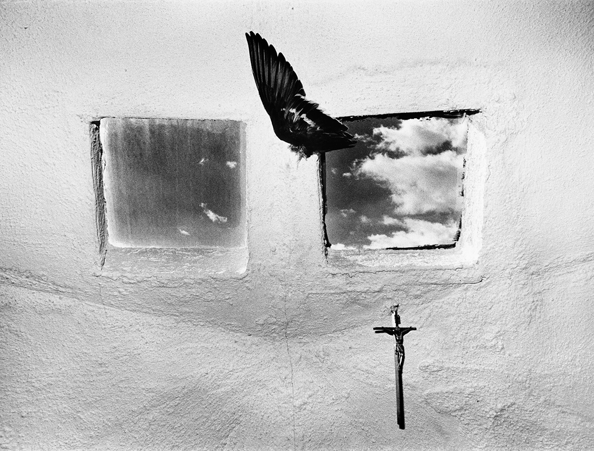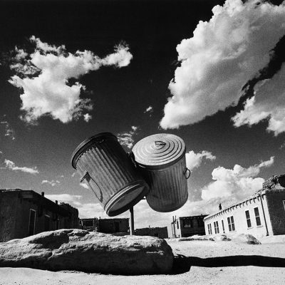 造訪新墨西哥州的原住民村落期間,他接觸到當地思想,並提及自己親身體驗了與大自然共存的模式。廣大沙漠中杳無人煙的機場,或是曾因礦業繁華一時,如今卻化為鬼城等荒蕪的景象,體現了大自然的力量所刻劃出的悠長時光,遠遠凌駕於人類的生命之上。如同奈良原回顧時說道,他所捕捉的光景賦予我們一種彷彿降落在外星世界的感受。陽光無情照映著這片裸露的大地,在奈良原的攝影表現之下,以強烈對比勾勒出深邃的陰影,並濃縮於畫面之中。當我們再度敞開約半世紀前奈良原所關上的那扇美國原生風景的門扉時,跨越時空的意象浮現於眼前,使我們得以見識到透過攝影追求普世價值的藝術家境界吧。