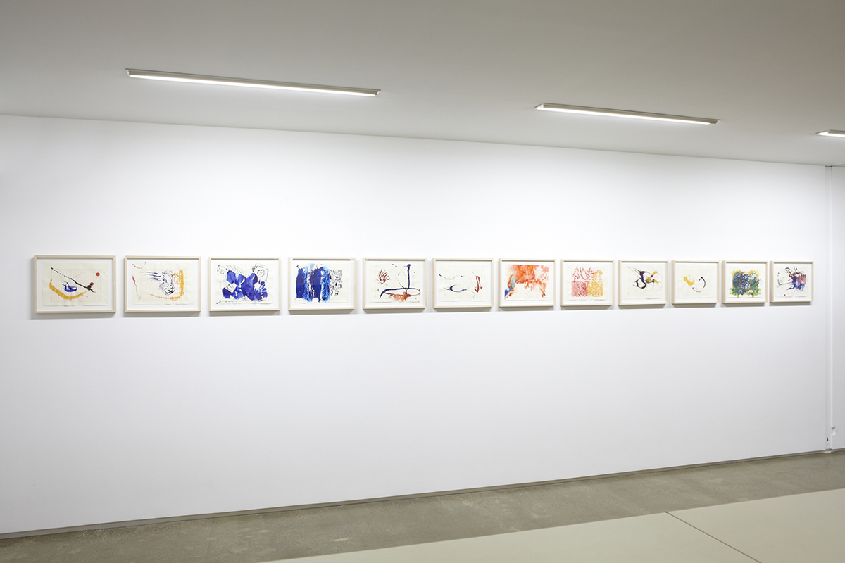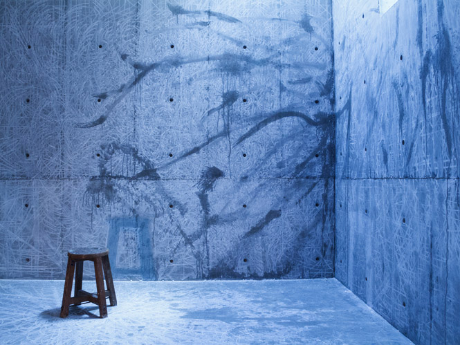 Up until now, Ishida had mostly used paint to create drawing animation works like “Gestalt” (1999), “CHAIR/SCREEN” (2003), “Wall of the Sea,” “Film of the Sea” (both 2007, made in public at the Yokohama Museum of Art), “Reflection” (2009) and “A White Room” (2012). This exhibition marks the first time he has used chalk in his work. With respect to the act of drawing with water, “Burning Chair” could be seen as the evolution of works like “Drawing on the Sand” (2011), a documentary work created on an Okinawan Beach which was shown at the Museum of Contemporary Art Tokyo, and “Summer Drawing” (2010), which Ishida drew on a concrete surface in high heat. This exhibit will also comprise highly experimental new drawings which were created by transmitting light onto manuscript paper.