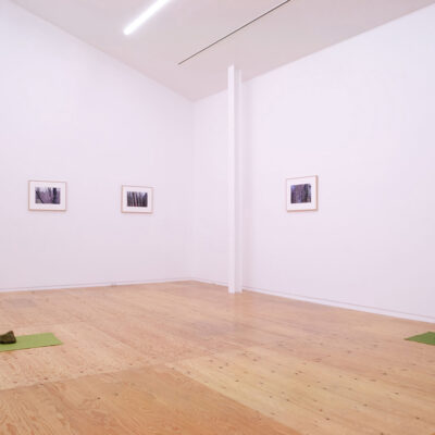 This photographic series is distinct within Mirra’s practice. Where Mirra’s works typically involve a reductive abstraction – Mirra consistently employs muted colors of a tone referencing natural phenomenon in a series of wall and floor works presented in a serial manner, often incorporating scrap material or found text presented in an indexical form – the present work begins with photographic representation and ultimately prompts a movement towards abstraction. The physical distance between each exhibited photograph and its double – Mirra specifying, generally, that it should not be possible to view both images at the same time from the same standing point – introduces a conceptual gap as an essential element of the project. The content of each image, when understood within Mirra’s and, more generally, a contemporary context, leads towards the consideration of further abstract issues of a photographic and wider interest.