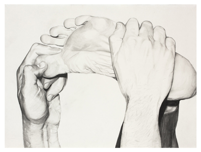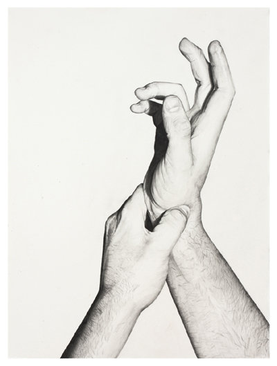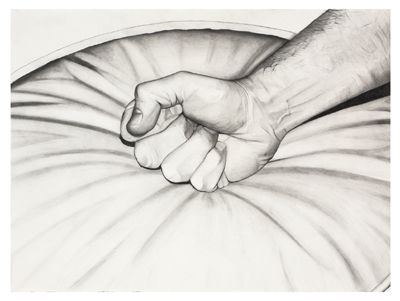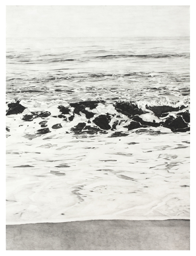 The small and large drawings in the show are tightly rendered graphite representations of various pressure points on our bodies, as well as a scene of sky and ocean. The pressure point drawings are meant to engage the viewer to vicariously experience the release of energy stored at these points, thus facilitating healing of mind and body. The large drawings of sky and ocean present a place of meditation and tranquility.