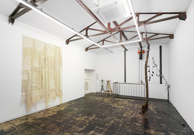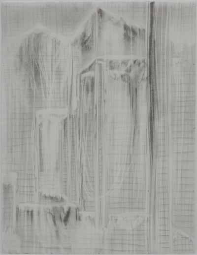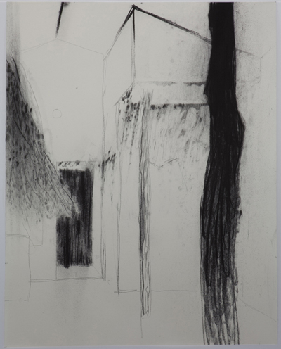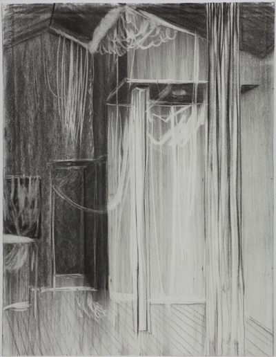 This new series of work is based on a single photograph shot in Cologne, photographic fragments of Taka Ishii Gallery Kyoto’s exhibition space, and the layered relationships that are formed from seemingly related instances. As the artist himself writes, “Establishing the relationship between several structures as well as existence itself,” Hirakawa departs from the gesture of ‘drawing’ while using ‘drawing’ as a starting point, and speculates on the nature of structure and existence through an experimentation of numerous possibilities. The exhibited works include canvases made out of stitched cotton, charcoal drawings, oil paintings, objects, and other structures revolving around a central, site-specific installation.
