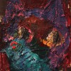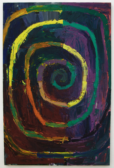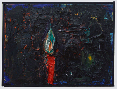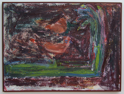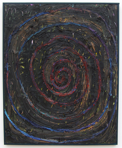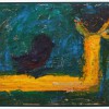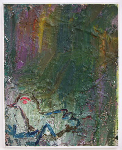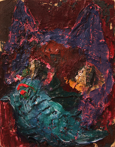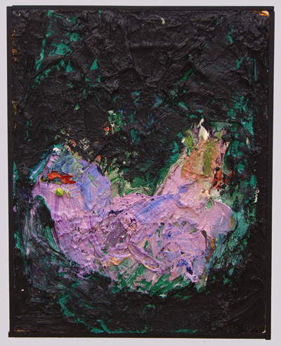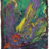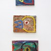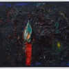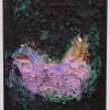 ‘Movement’ and ‘stillness’ are two conflicting elements which coexist in Kugimiya’s paintings. The small works, painted using animation techniques, strongly display this tendency – these are characterized in the sense that, despite being oil paintings, the image is developed through the process of layering upon the canvas frame by frame as in stop motion animation. This layering process blends the colors and shapes together, blurring the boundaries of figuration and abstraction, while the chaos provoked by chance adds depth to the work. Instead of working towards a completed image, the powerful brushstrokes that explore the image directly on the canvas leave lumpy textures and marks, resulting in a peculiar tactility.