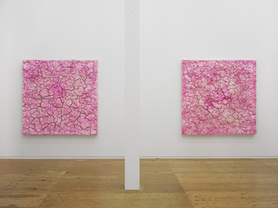 Sodi has a strong interest in non-artificial organic materials and mixes sawdust, wood pulp, and natural fibers with unadulterated pigments, glue, and water and works with them using his bare hands on horizontally positioned canvases. He views the production process as an exchange with the materials; his paintings are produced through a combination of several days of physical work and organic and unpredictable changes in the material itself. The artist mixes pigments into the material instead of applying them to the surface of his works to give form to the vibrant energy that resides within organic matter and nature. As the material dries out, they crack and create changes in color and texture. The resulting works exude a singular atmosphere and overwhelming presence.