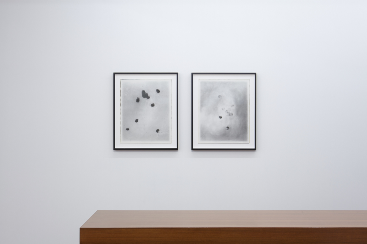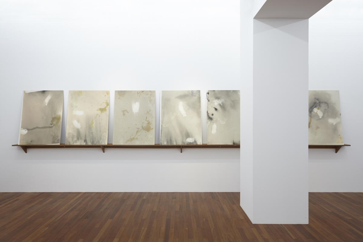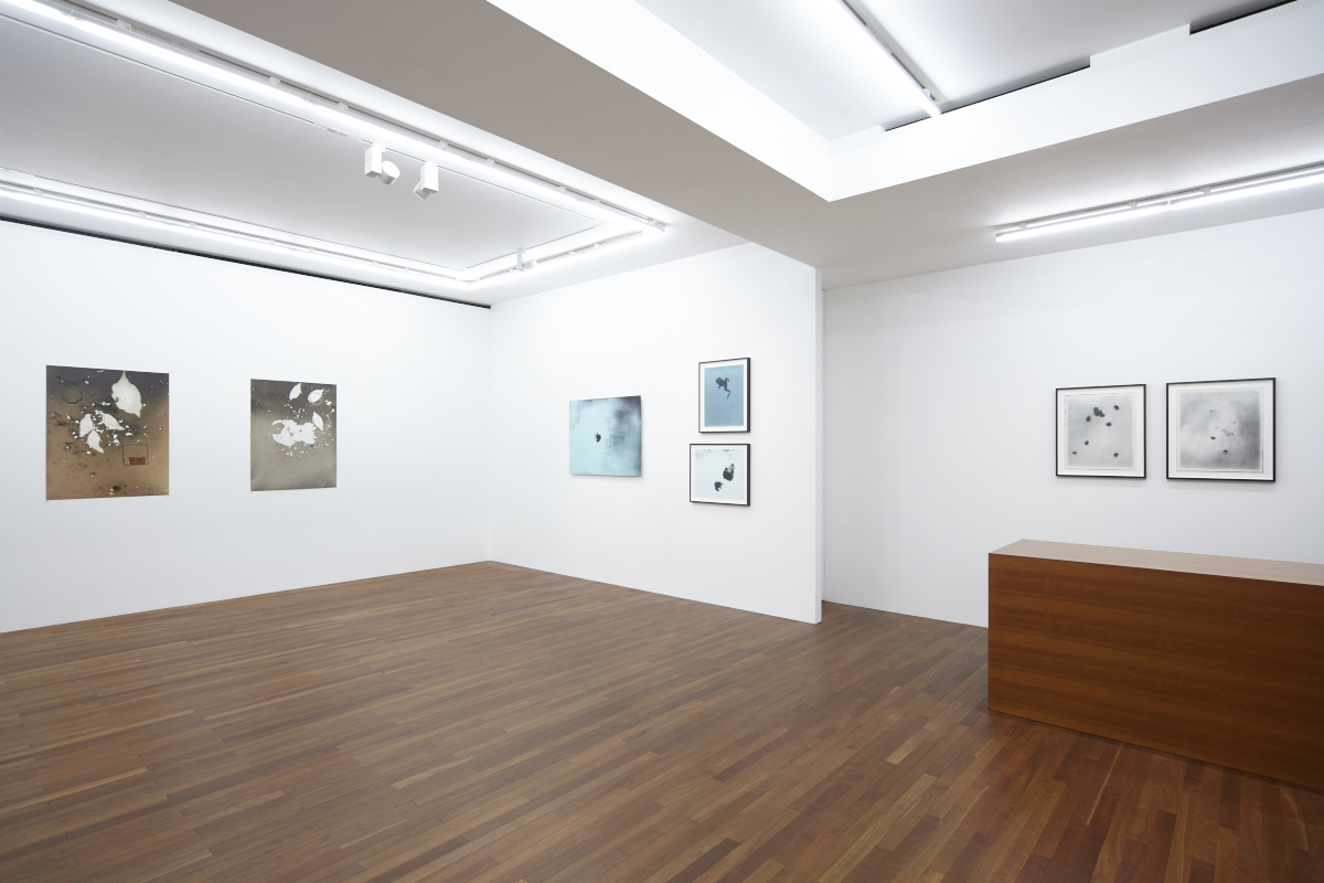 Sugiura began producing photograms in the 80’s, which have ever since become one of her most representative series of works. The photograms remarkably depict the artist’s consistent themes of time, the circumstances of such phenomena that are naturally induced through means of coincidence, as well as the facticity, fortuity, and contingency of their documentation. The photograms entitled, “The Kitten Papers” serve as a sustained record of time conveyed through the transience of the kittens’ movements overnight and the traces of their sleep. In addition, the imagery conceived as a result of the unpredictable movements of animals including frogs in the work “Hoppings” and snails in “Snails,” are only obtained through fortuity between the artist and such images created by natural coincidence; essentially described by Sugiura as “a mutual agreement between nature and myself.” Photograms consist of a combination of distinguished negative and positive imagery, and while respectively being shadows of ‘objects’ created through intercepting light, inspire a new stream of imagination in the viewer as they are seemingly instilled with impressions different from the very things they convey.