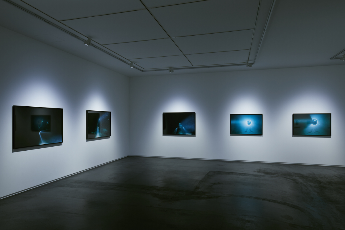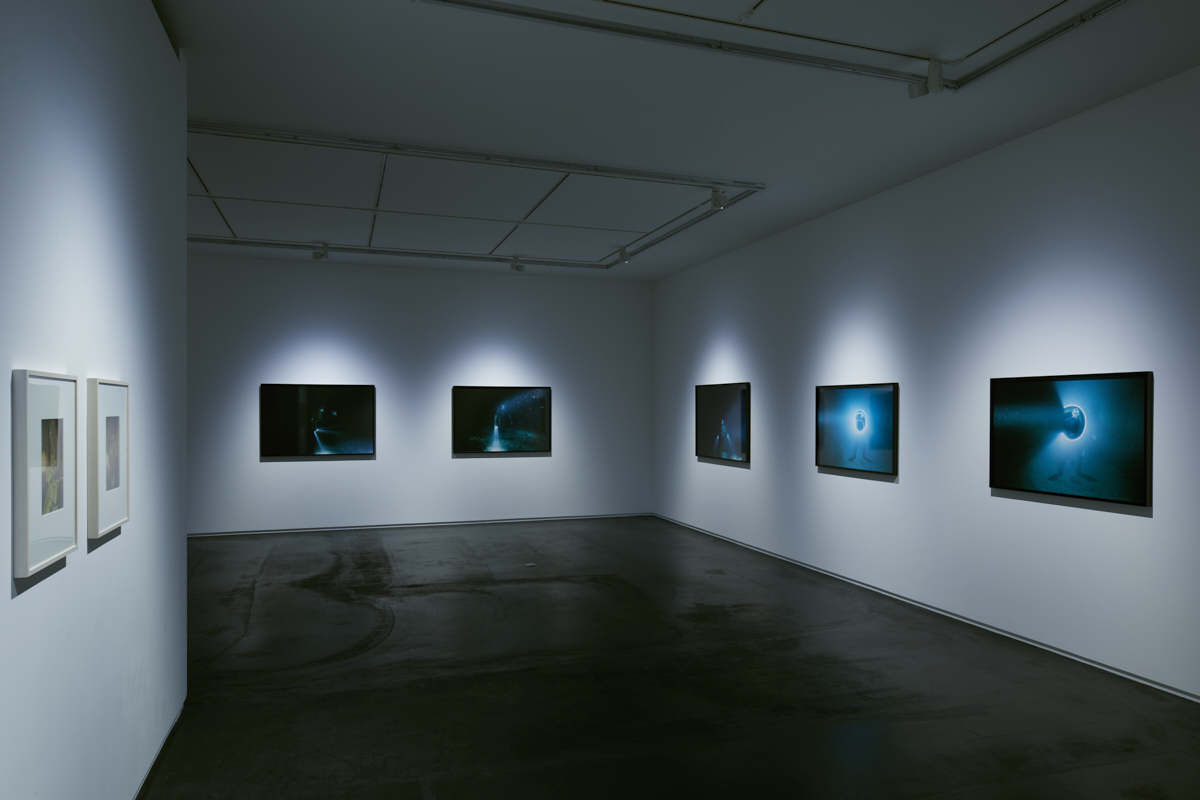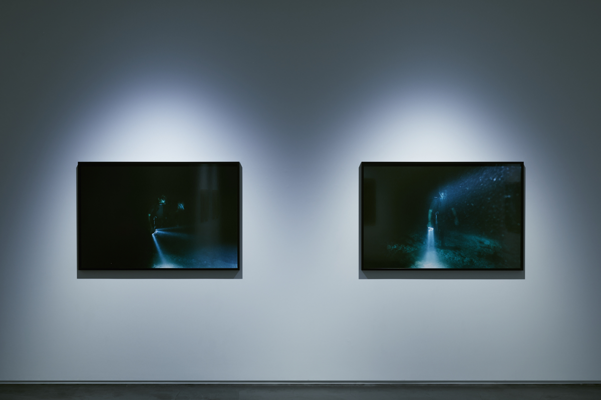 The large format color works ”At the Bottom of the Sea” that is presented in this exhibition, is Noguchi’s latest series capturing underwater scenes following from her previous “To Dive” (1995) and “Color of the Planet” (2004) series. These works that have been photographed in the sea of Okinawa, capture images of a diver who stands upon the ocean floor while lighting his dark surroundings where the rays of the sun do not reach. In the profound depths of the sea that we all know, exists an otherworldly realm where the inescapable gravitational forces of the earth appear to have no power. Noguchi describes the “To Dive” series that follows a diver she coincidentally encountered as he ventures out to the sea as “a work that endeavors to journey to the moon’s surface” and defines the “Color of the Planet” series depicting the beautiful blue sea and solitary underwater ruins of Yonaguni as precedent of the former. One wonders what Noguchi’s gaze indeed discovers upon setting foot upon the moon’s surface in this third and latest installment of her underwater works.
