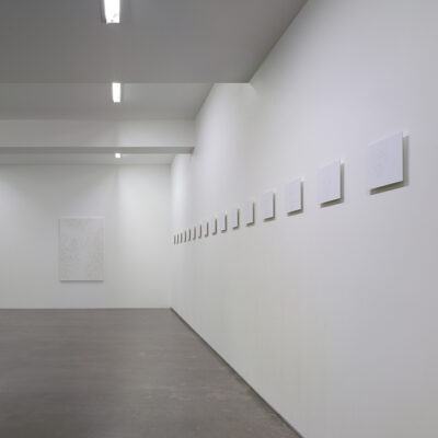 By dividing one color into two complementary colors (for example, Black into Red and Blue) and allowing those lines to travel side by side in a subtle trajectory, Hoki creates a radical three-dimensional portrayal of depth, “a multi-stratifying of single layers” and seeks a new potential for painting which is free from a traditional approach.