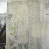 A large-scale work comprised of two layers of embroidery and a photograph entitled, “Blocks in my Head and Berlin,” is a portrait of a wall, embroidered through reminiscing the concrete blocks stacked upon the vacant lot where Takemura’s paternal grandmother’s house used to stand. The wall, completed though sensitively arranging the assemblage of blocks, is akin to the block wall witnessed by the artist on a daily basis in Berlin. The artist’s memory does not establish itself on its own, but intersects with the memories of others who trace the thread, gradually transcending the boundary and striving to evoke a universal memory which in turn encapsulates even the lives of unknown people.