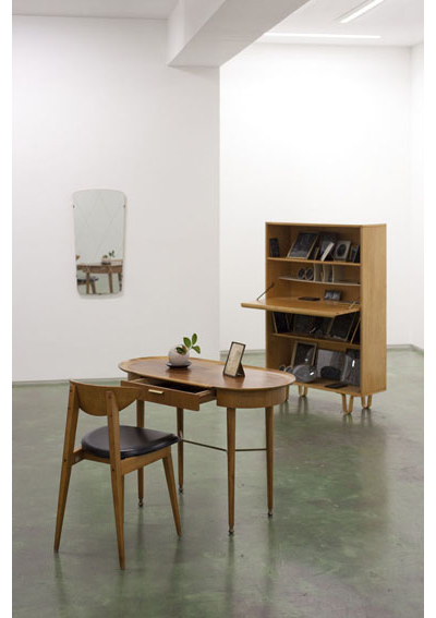 “prosaic verse” is a poetry of drawings selected from various scenes in which Takemura personally felt a sense of familiarity; these cut out from the hundreds of photographs she found in the market. The piece is based on a series of photographs taken in the pre-war period of the 1920’s when Takemura’s grandmother spent her childhood, to the 1980’s in which Takemura herself had spent her childhood. The photographs taken coevally are each placed in a photo frame which the artist felt suitable to coincide with the ‘space’ in which each of the objects and people captured in the photographs had existed. Furthermore, a familiar desk, chair, and book shelf are also chosen as a space in which the photo frames exist. Takemura states, “Through the process of transferring the lives of the unknown, I have perhaps aroused in myself a sensation as if the objects in their homes had seemingly existed within my own life.”