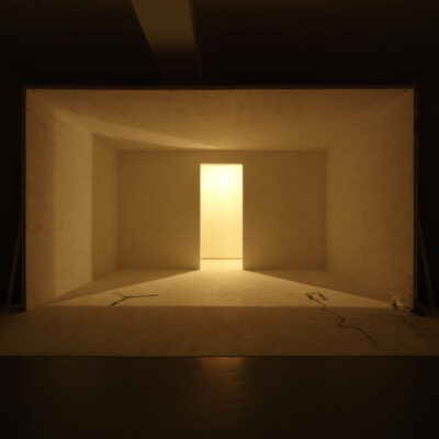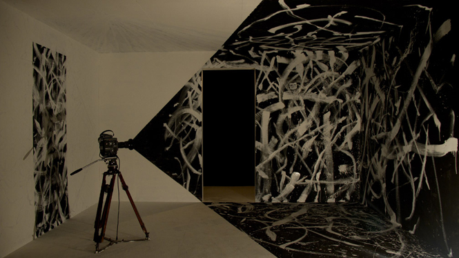 This work documents a painting being created on the wall and floor of a room. The documented painting, however, is just one out of many that could have been produced. In this sense, the aggregate of everything that was not documented could just as well be the work. Indeed every time I released the shutter, I felt as though I was simultaneously photographing another line in addition to the one I had just drawn and captured. Perhaps because I was shooting the room from multiple angles, slightly different rooms seemed to branch off into many more different spaces.