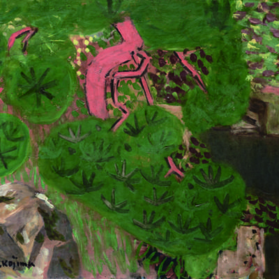 Landscape painting was established as a distinct genre in the 17th century, and its development offers a window into changing views of nature held by painters, and people more broadly, over time. Arruda works in the context of landscape, a well-defined art-historical concept, but his works based on remembered images can be seen as manifestations of internal imagery and the ethereal. Meanwhile, for Kojima, landscape painting seems to have been a means of immortalizing beloved Japanese scenery and the transient beauty of daily life by transforming them into timeless art. His fluid and vibrant depictions of trees and clouds, in what came to be called the “Kojima style,” convey his commitment to depicting Japan’s terrain and climate with quintessentially Japanese techniques. Lorenzato’s landscape paintings present a unique perspective on his immediate surroundings, day-to-day life, and urban environment. The fruit of meticulous observation of the everyday, Lorenzato’s paintings are intimately tied to his personal experiences.