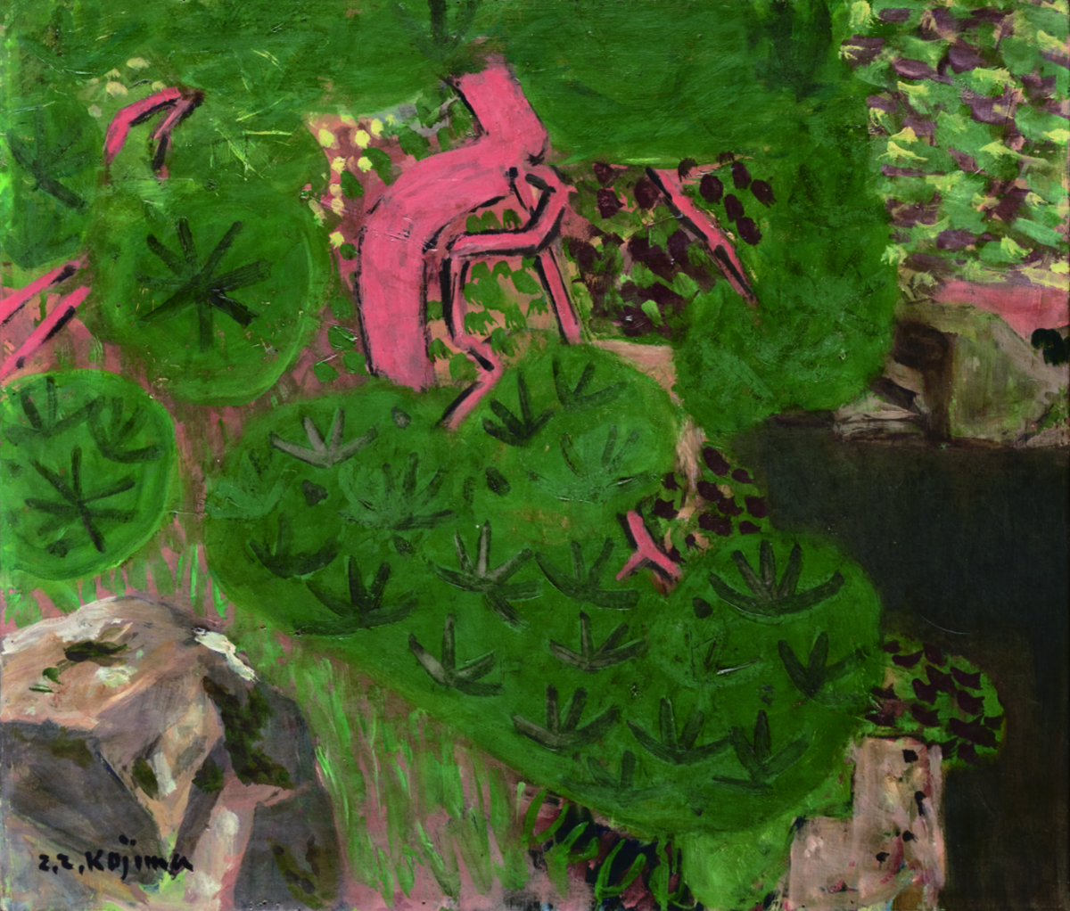 Zenzaburo Kojima (1893-1962) was born in Fukuoka City, and attended Fukuoka Prefectural Shuyukan High School before enrolling in the Pharmacy Department at Nagasaki School of Medicine (now Nagasaki University). In 1913, his strong aspiration to become a painter led him to withdraw from school and move to Tokyo. He studied from 1925 to 1928 in France, where he dedicated himself to mastering volumetric expression of the human figure and other techniques. Several years after his return to Japan in 1928, driven by his belief in the need for “Japanese paintings for Japanese people,” he co-founded the Dokuritsu Bijutsu Kyokai (Independent Art Association) with Katsuzo Satomi, Takeshi Hayashi and others with the goal of establishing “Japanese-style oil painting.” After moving to Kokubunji, Tokyo in 1936, Kojima primarily concentrated on landscape, and passionately depicted the scenery of Atami and Hakone in his later years. Recent solo exhibitions include “The 130th Anniversary of the Birth of Kojima Zenzaburo” at Fukuoka Prefectural Museum of Art (2023), “Den’en no kagayaki (Luminous Countryside)” at Fuchu Art Museum (2007), and “Kojima Zenzaburo: Creator of the Japanese Oil Painting” at Shoto Museum of Art (1998).