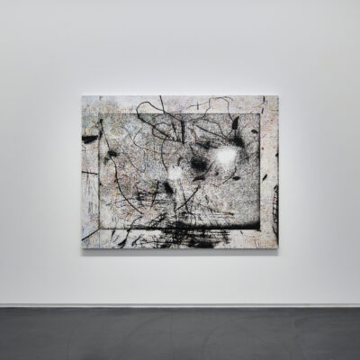 The works on view incorporate layers of Saito’s pencil drawings. The ambiguous black lines and shapes appear to be representational, yet stealthily evade connection to any definite meaning. For the first time, Saito has brought the physical act of drawing into the landscapes his retina has long observed.