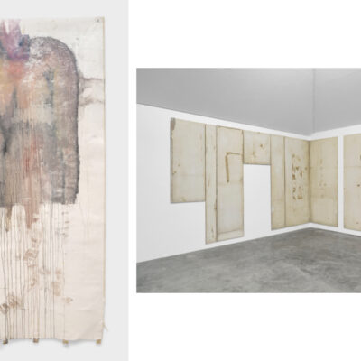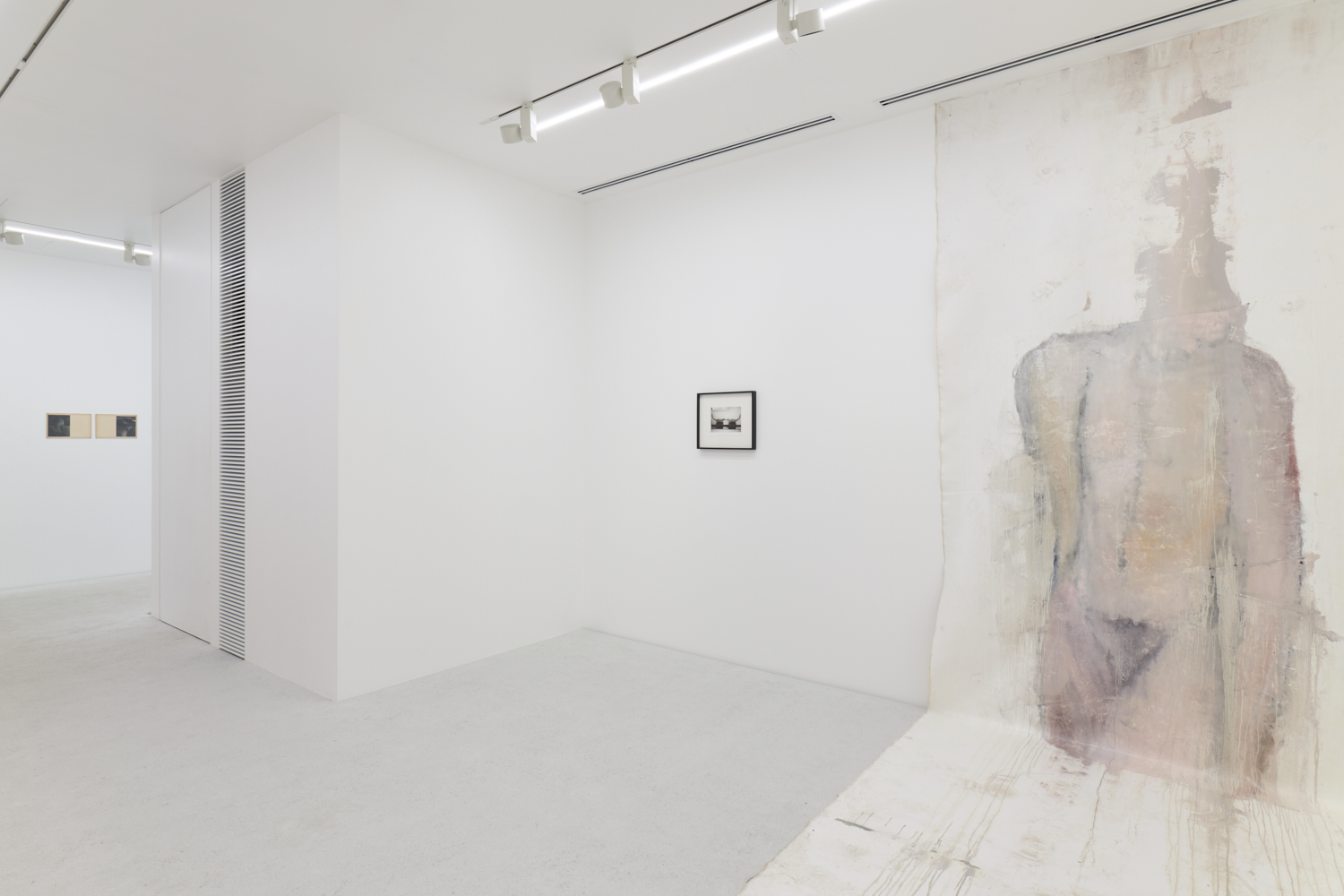 Serpas’ monumental figure paintings suspended from the wall, which often depict torsos, draw on AI-generated images of human body as their source material. The images produced from data at times appear distorted, fractured by noise, or assembled from fragments as though pieced together from disparate uses. In this respect, they may be said to share qualities with the materials that Serpas employs in her sculptural works.