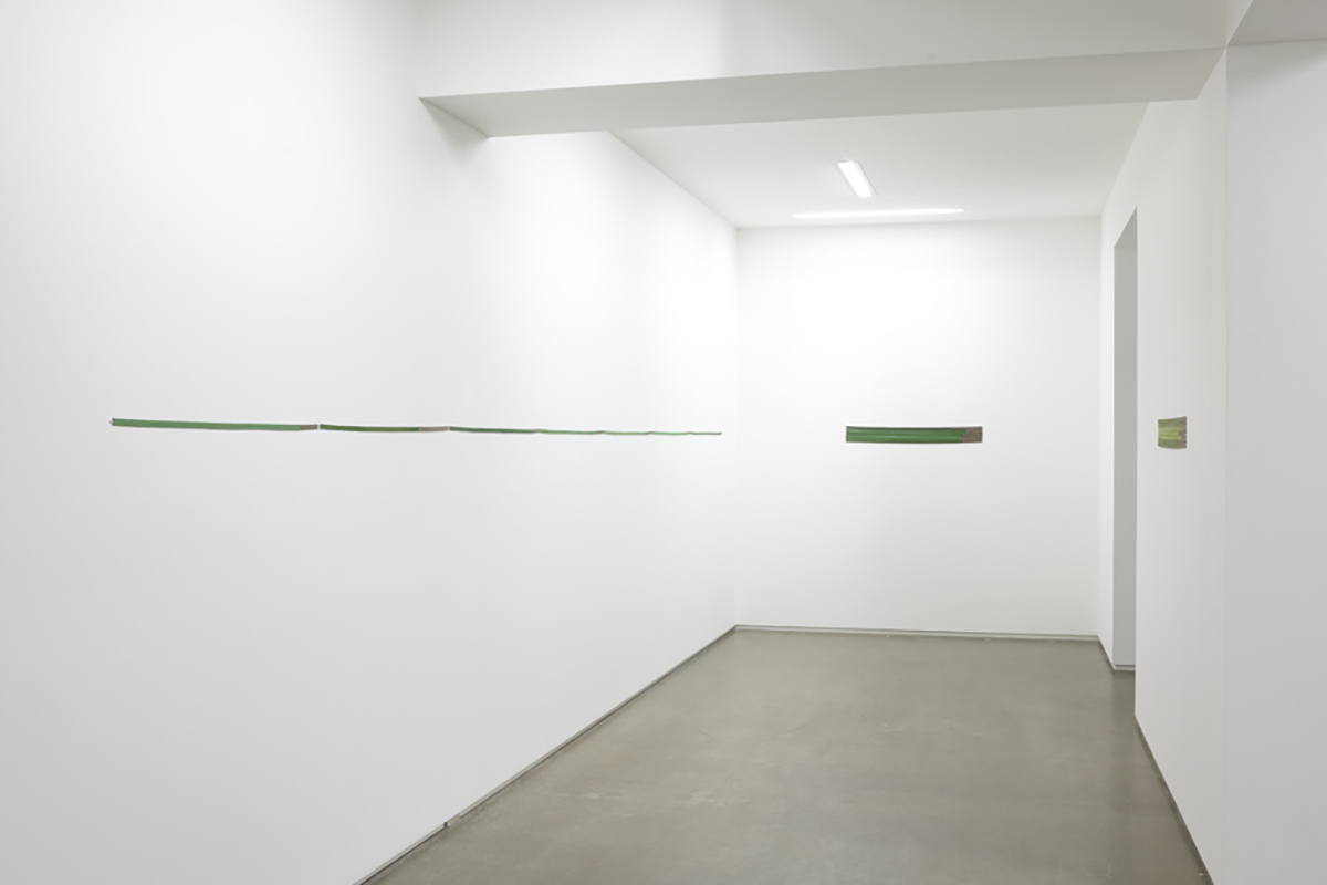 The gallery is presenting works from Mirra’s recent walks in Bretagne (Brittany). These walks were substantiated through a series of terse field notes made over the seven hour course of each day; the notes ultimately serving as text for typewritten 16mm cotton lines, each hour represented by a one meter long line. The exhibited line works developed from Mirra’s present practice: a cycle of exhibitions in which walking in one region results in a body of work for exhibition and subsequent walking in another. From 9 October – 6 November Mirra walked in Western Japan, producing works that will be exhibited elsewhere.