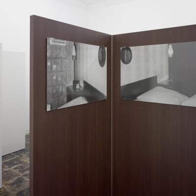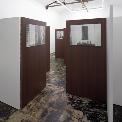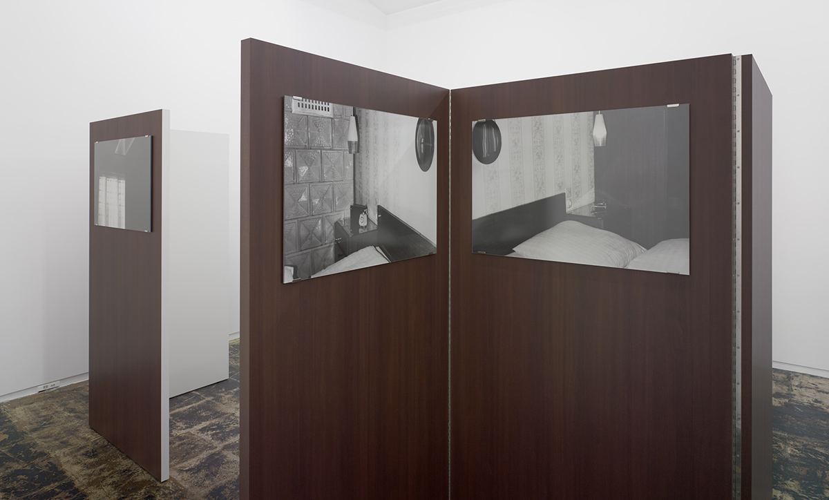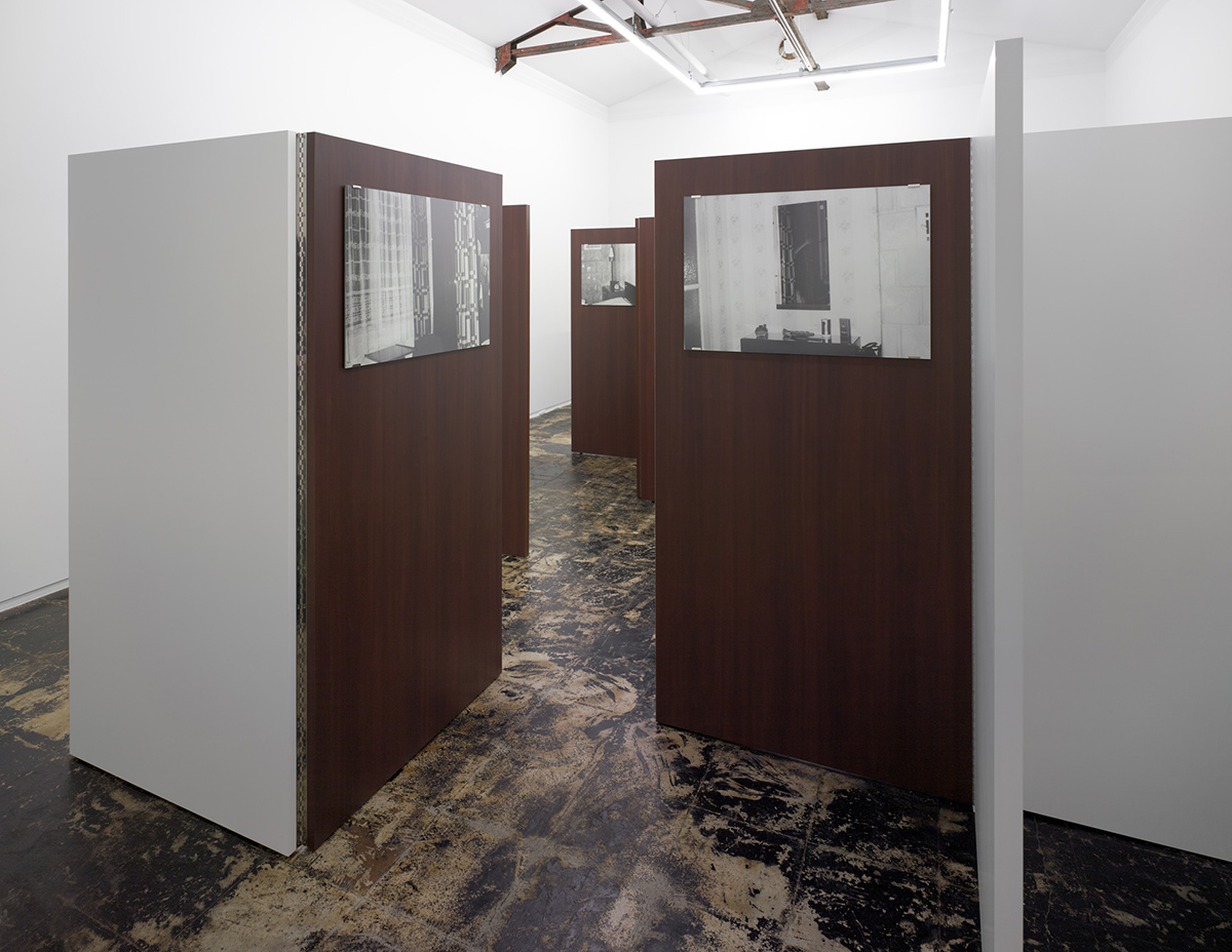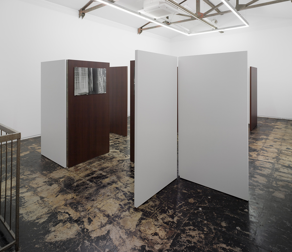 In the current exhibition, Yuki Kimura will exhibit her new work “Interior 6L01–107T”, which continues her engagement with photographs of rooms. Both the lifestyles captured in the anonymously produced found photographs of living spaces Kimura uses in her works and the medium of the analog photographic print have become obsolete with the passage of time. Kimura has found inspiration in the fact that the image and the medium have followed the same fate together. The current installation consists of free-standing panels and a related series of 9 black and white photographs. The space represented in the photograph overlaid on the actual space of the gallery via the support structure, results in the creation of a new space. The relationship existing between the photographs may be read as a series of induction lines within the space, photography evolving into a physical experience. From the place in which the photographs were taken to the place the photographs have been placed, Kimura’s practice calls into existence what one might call a visual tautology. This will be Kimura’s first solo exhibition at Taka Ishii Gallery Kyoto and her 6th with the gallery.