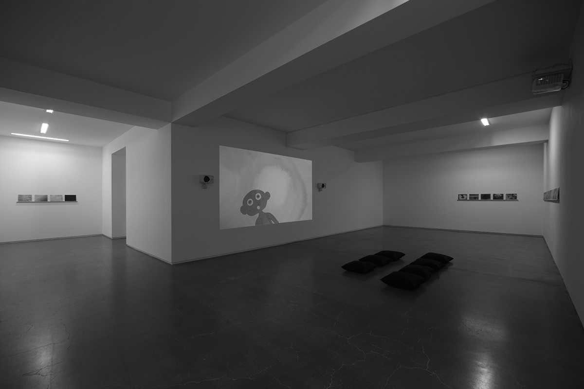 The exhibition’s main piece, The Kid Who Loved Being Bored, is a short-essay about the beauty and usage of boredom, which takes the form of a children’s book. In the tale, the discovery of Xoco with such an emotional state and his momentary existence in a beam of light are recounted and used to glimpse at the possibility of emancipation through imagination.