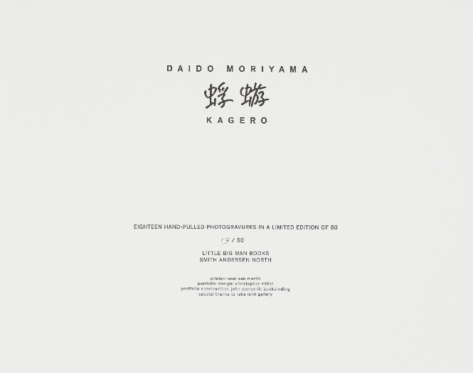 手作業によるフォトグラビュール・プリント18点、ペーパーサイズ:各35.3 x 44.5 cm、重量:5 kg(外箱含む)、各エディション作家のサインおよびエディショナンバー入り、オリジナルディスプレイボックス(40 x 49.8 x 4.8 cm)、銅版制作・プリント:Unai Sant Martin、ポートフォリオデザイン:Christopher Miller、ポートフォリオ製作:John de Merritt bookbinding、協力:タカ・イシイギャラリー