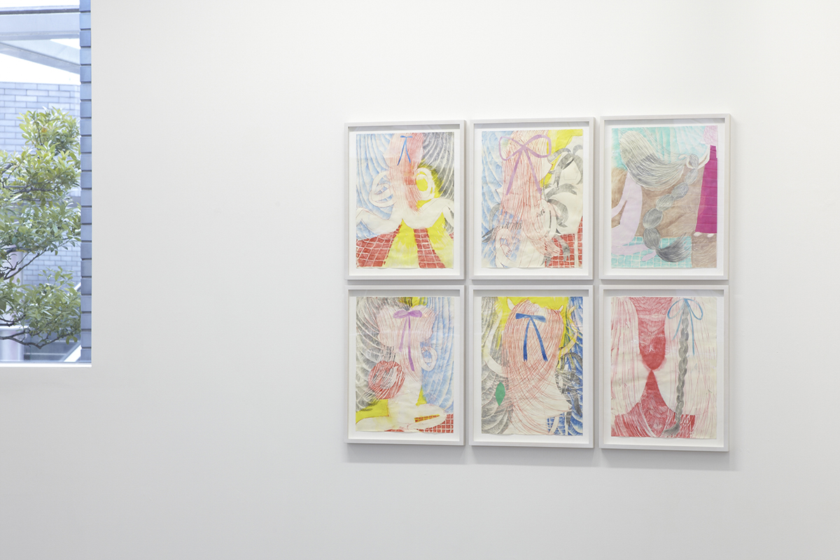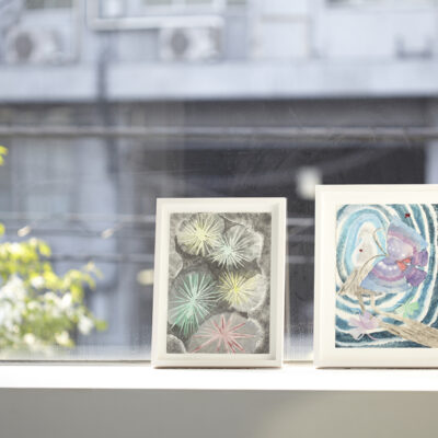 村瀬のドローイング作品からは、とても伸びやかな作家の手つきが感じられます。そこでは、描くこと、色を塗ること、そして一つの枠として仕上げることといった絵画の基本的な要素が制約を解かれて自由に展開され、時折花びらや雑誌の切り抜きがコラージュされるなど、作家が様々な可能性を探っている様子が見受けられ、かねてより高い評価を得てきました。豊かな解釈に開かれた村瀬恭子のドローイング作品をこの機会に是非ご高覧ください。