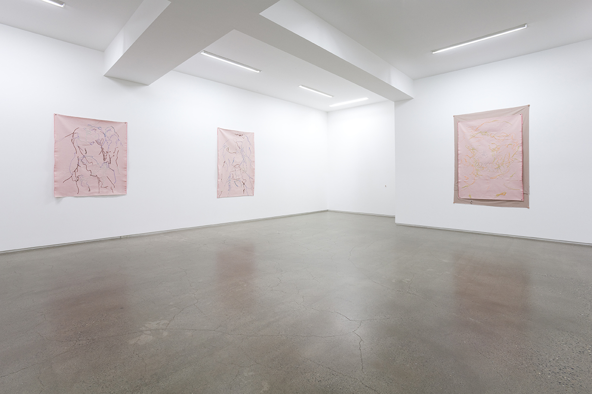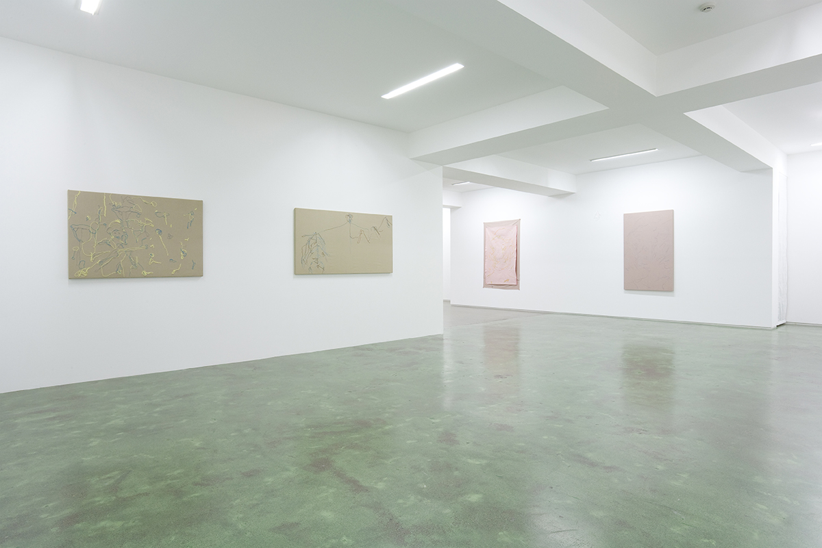この展覧会が始まる頃はいつも通りだと、やっぱり桜とかすごい咲いてるんじゃないでしょうか、でも桜植えすぎでやばいと思うんですが。個人的には、そういう象徴的なものよりも、色々と蠢きだす春に分があると思います。この展覧会は個展なので、個人的に分のあると思っていることの肩を持って作れたらと思い刺繍しています。刺繍のストロークを測ってみると3 mm~235 mmというところでした。この幅のストロークがくっついたり、はなれたり、かさなったりしながらぞわっとすればオッケーです。