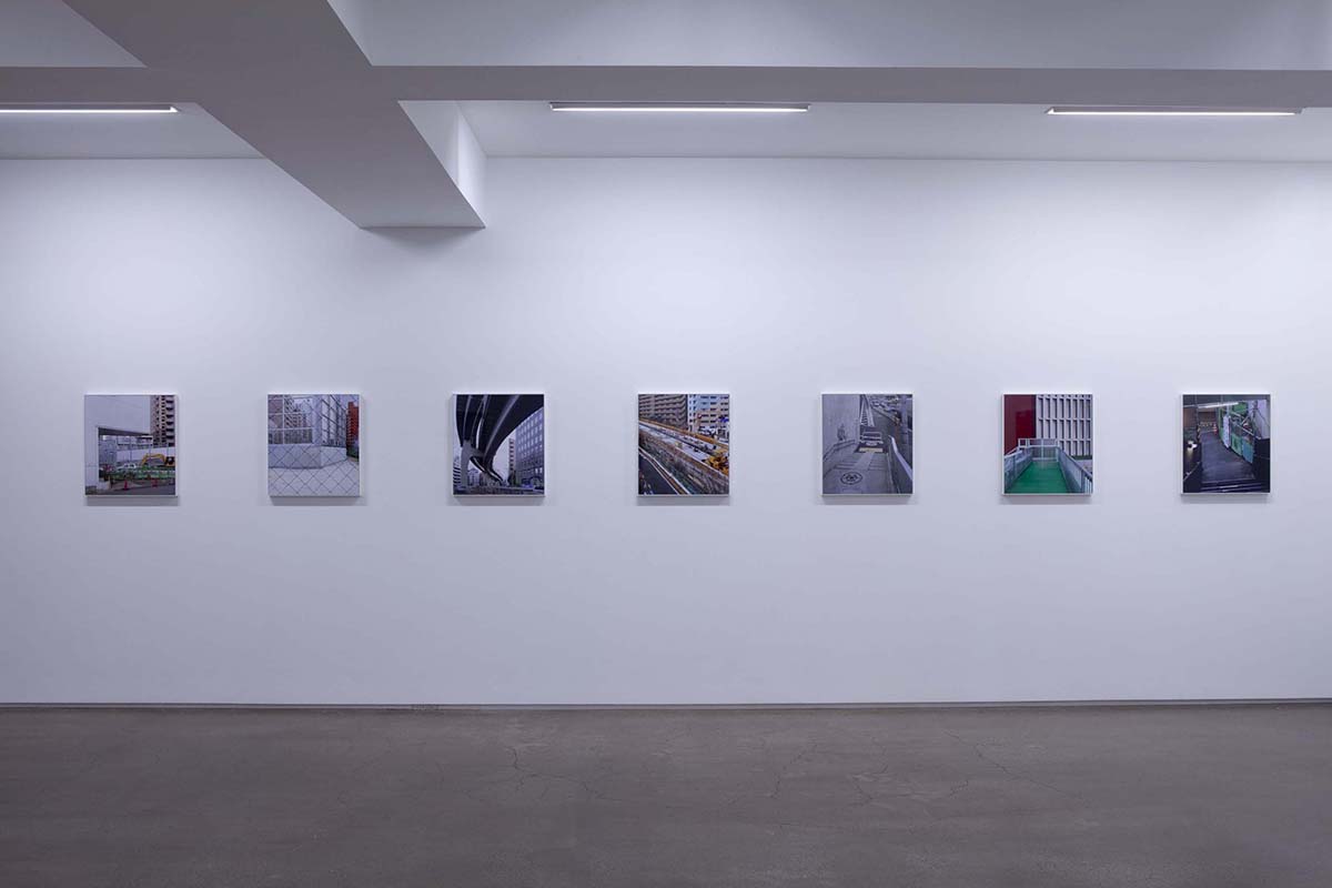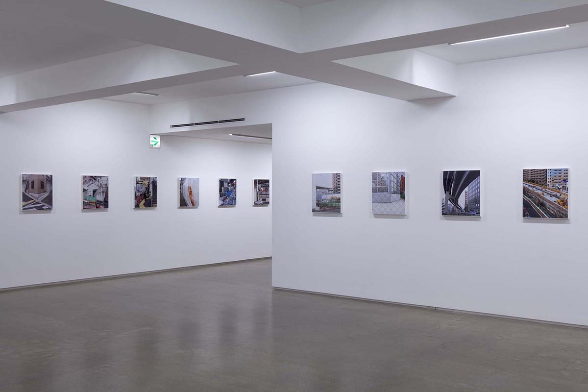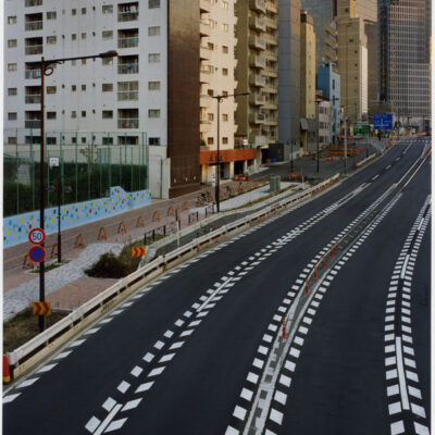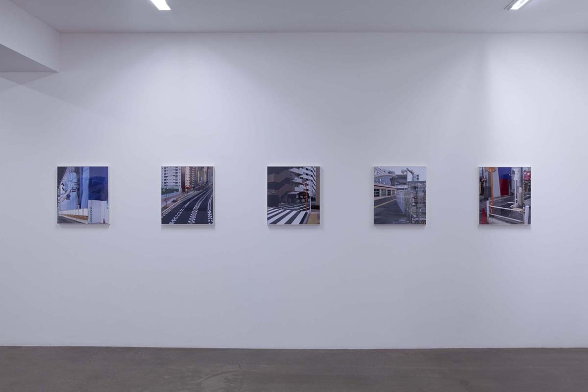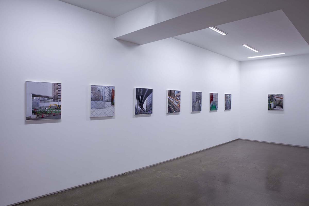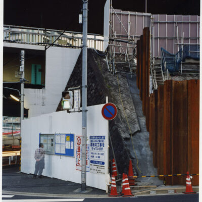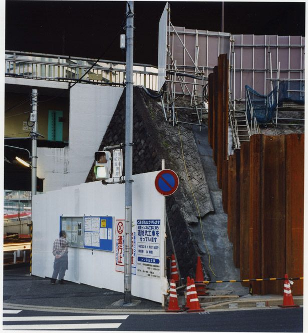 山手通りの下には、今年度3月に全線開通をした首都高速・山手トンネルが走っています。畠山が撮影を続ける間、地上は常に工事中であり、そこに見られる景色は文字通り日ごとに変化を続けていました。人間の手によって引かれる線は、まるで刻々と姿を変え、色彩を変える自然のように都市を形作ります。「線をなぞる / 山手通り」の作品シリーズでは、都市に引かれた線と面と色彩が、私たちが日常感知している様相とは異なり、まるで都市という巨大な謎の急所を突くような姿を見せており、都市と自然の境界へ鋭い疑問を投げかけているようです。