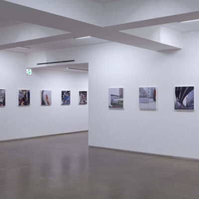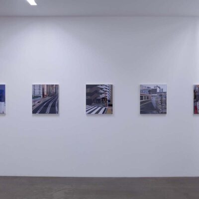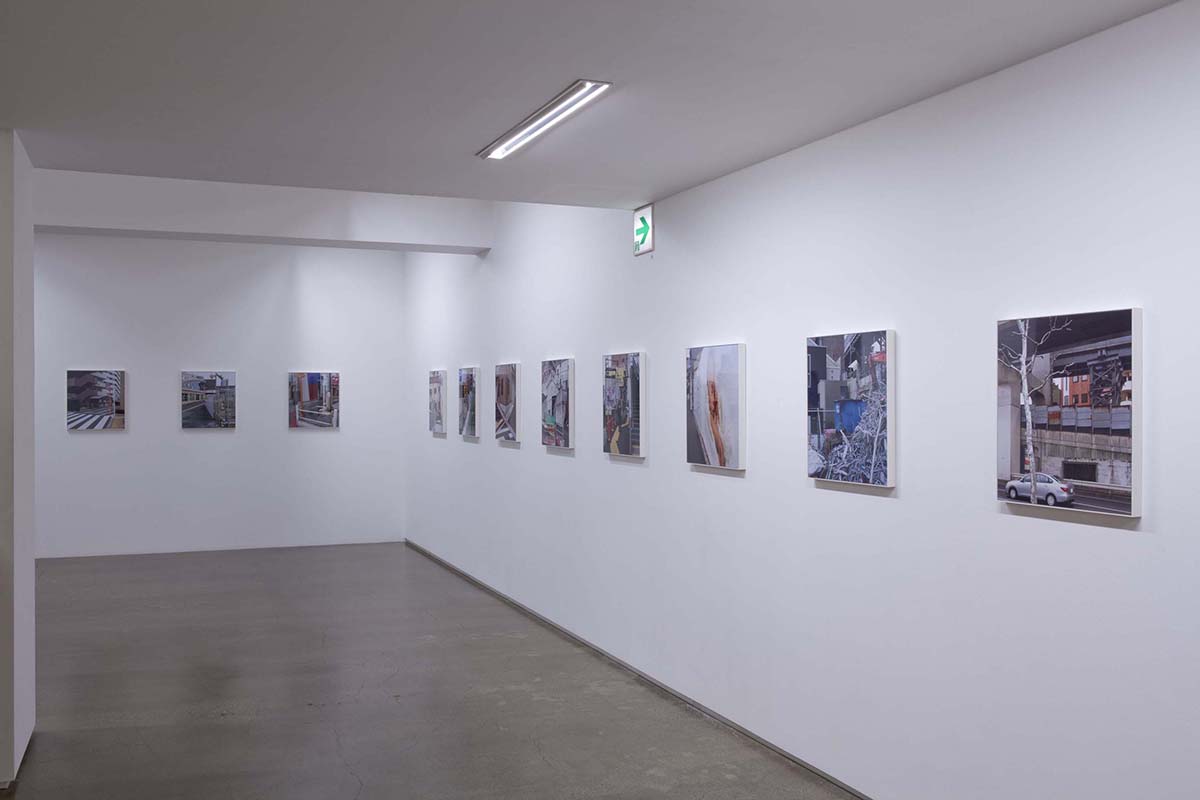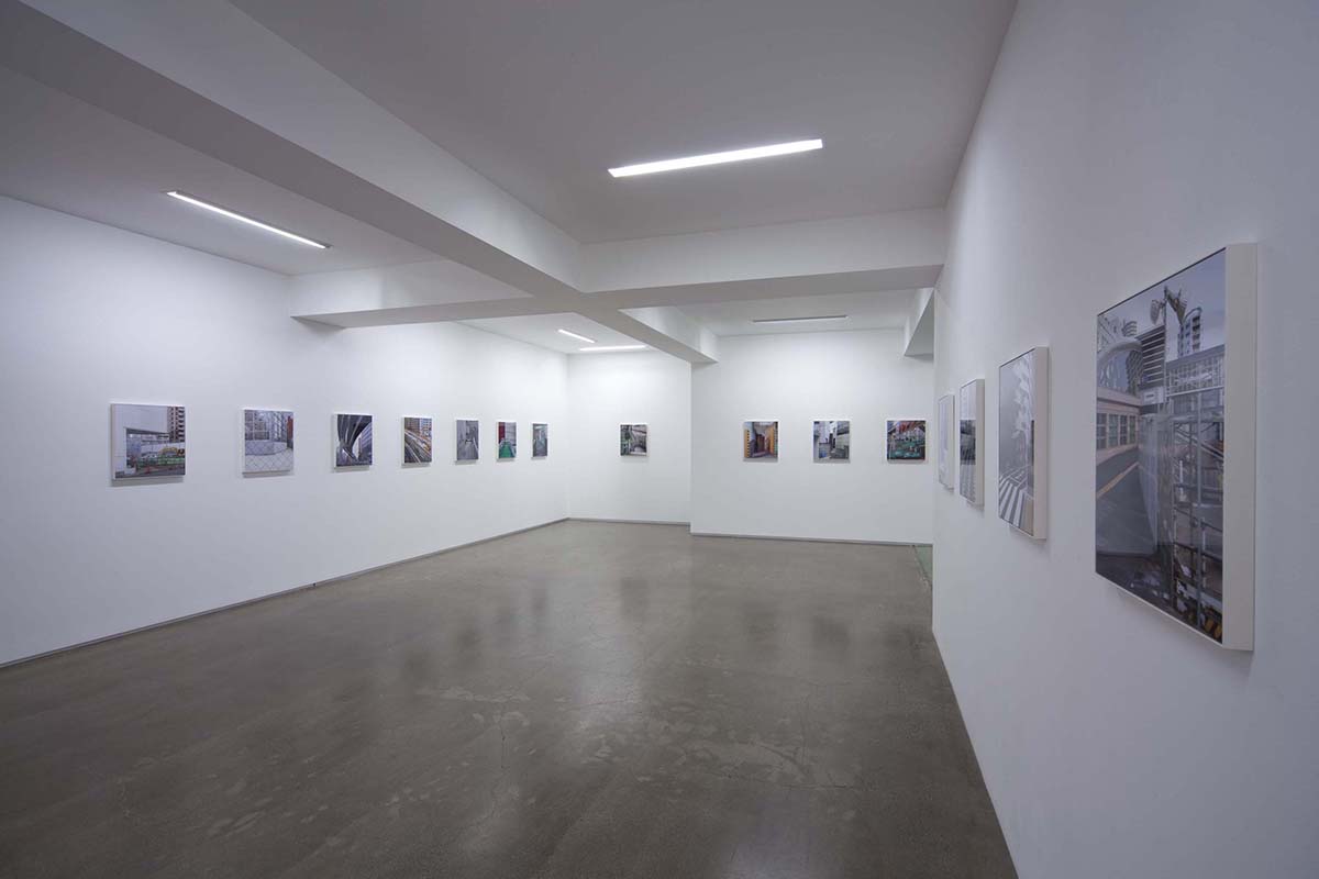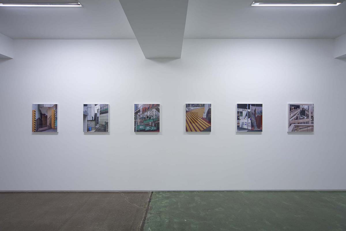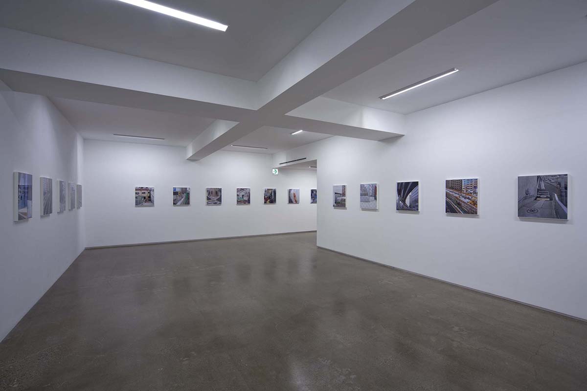 山手通りの下には、今年度3月に全線開通をした首都高速・山手トンネルが走っています。畠山が撮影を続ける間、地上は常に工事中であり、そこに見られる景色は文字通り日ごとに変化を続けていました。人間の手によって引かれる線は、まるで刻々と姿を変え、色彩を変える自然のように都市を形作ります。「線をなぞる / 山手通り」の作品シリーズでは、都市に引かれた線と面と色彩が、私たちが日常感知している様相とは異なり、まるで都市という巨大な謎の急所を突くような姿を見せており、都市と自然の境界へ鋭い疑問を投げかけているようです。