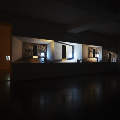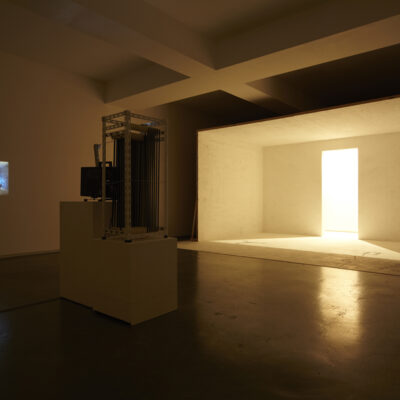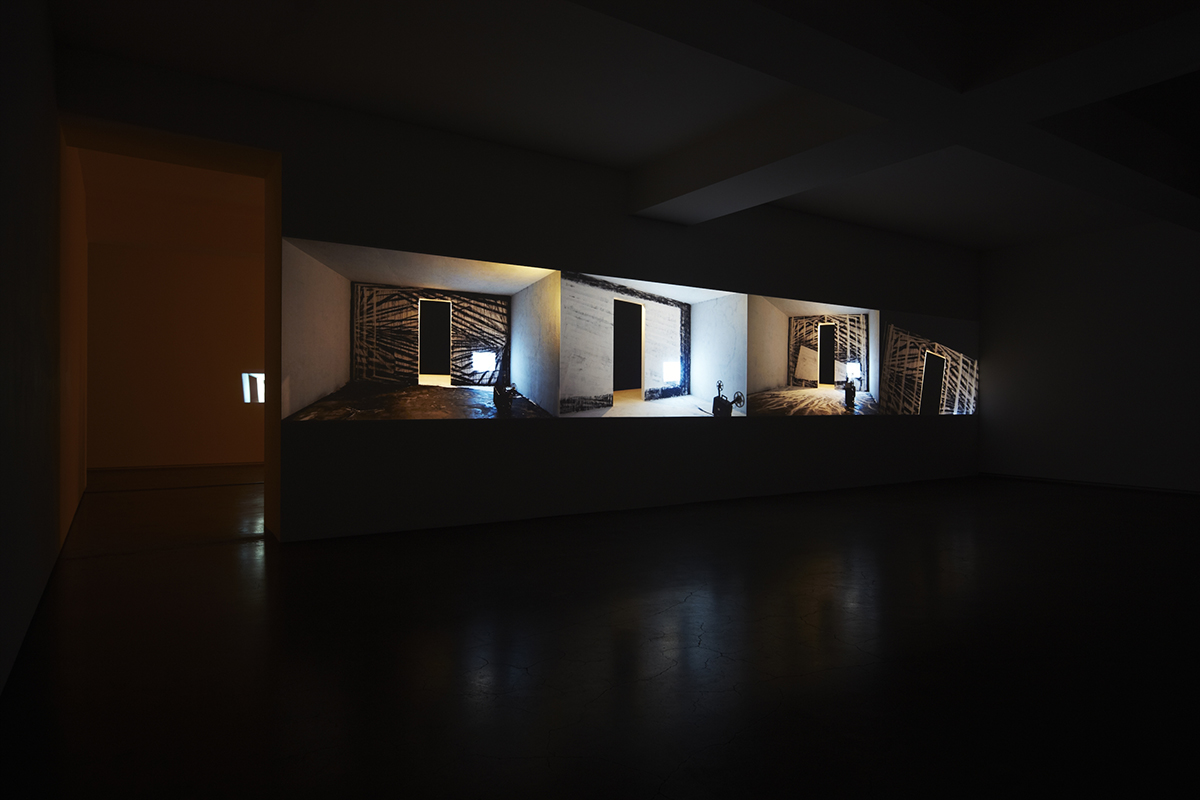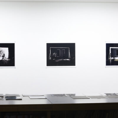 この作品には、壁や床に展開する絵の途上が記録されている。だが、これは無数にあったはずの絵の展開の可能性のひとつに過ぎず、むしろ記録されなかったものの総体こそがこの作品かもしれない。そう感じるのは、シャッターを切る度に、今この瞬間に描いて撮影したものとは違う、なにか別の線も同時に撮影しているような感覚が強くあったからだ。幾つかの角度からその部屋を撮影していたからかもしれないが、わずかに違う部屋が枝分かれるように幾つも別の場所に生まれていった。