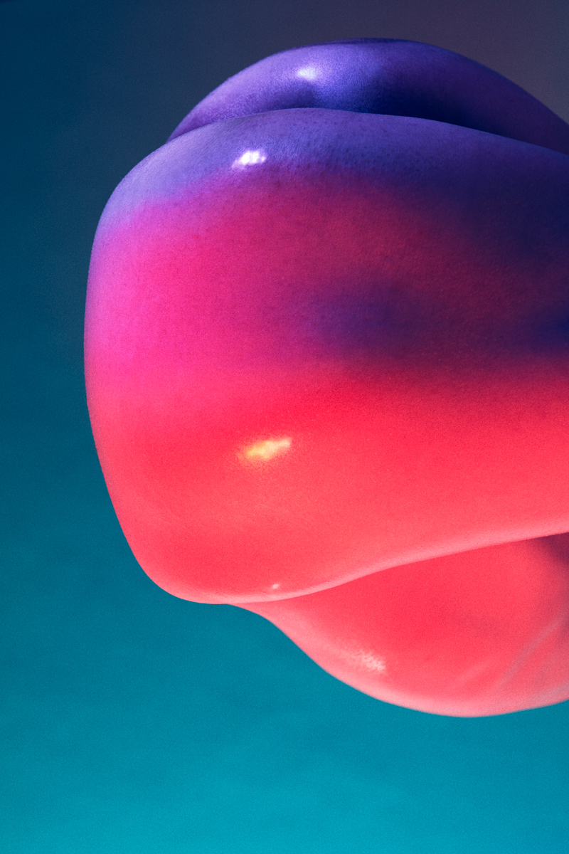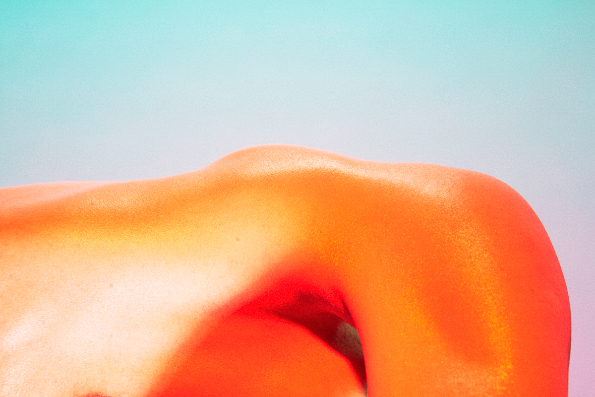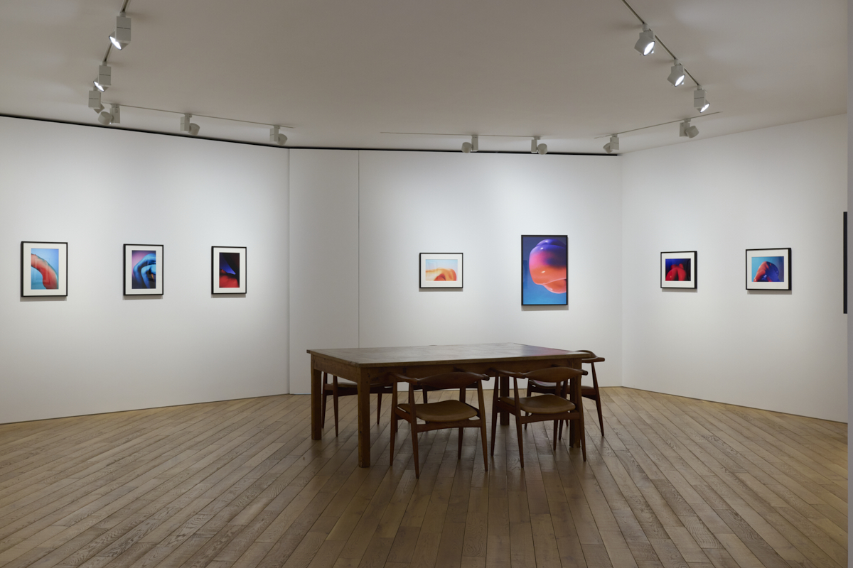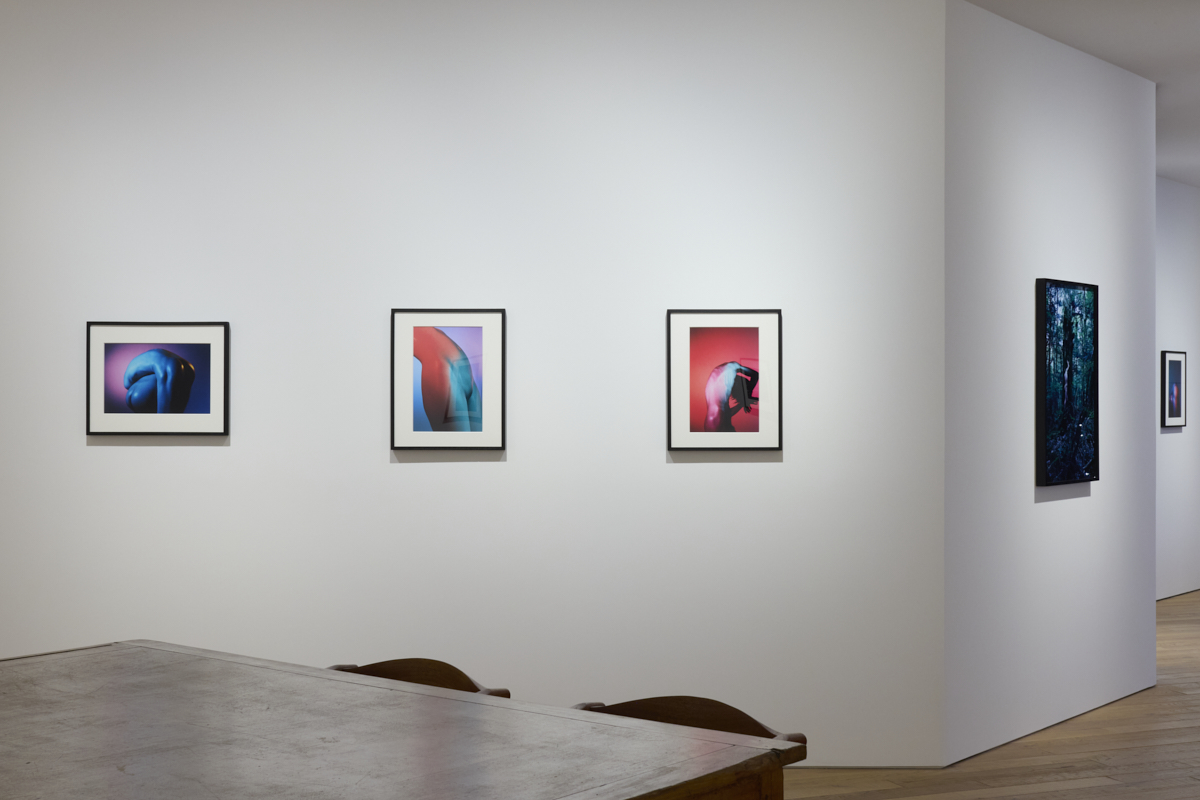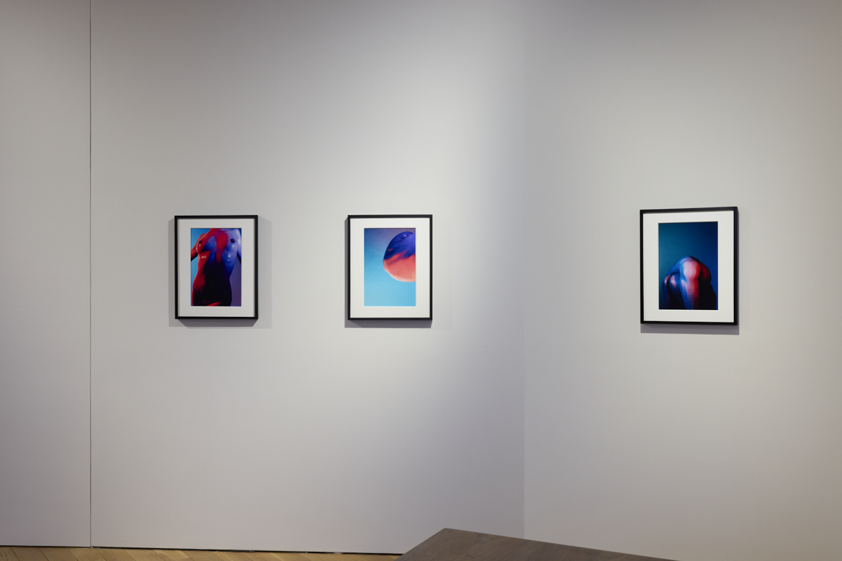 2つ目のシリーズはスタジオで撮影され、エドワード・ウェストン、アーヴィング・ペン、ロバート・メイプルソープなど、モノクロームのヌード表現における巨匠たちへの敬意を払いつつ、カラーライティングによる新しい表現を追求しています。宮原が得意とするフィルターを駆使した手法により、肉体の輪郭が曖昧になり、単なる身体ではなく、その内側から発せられるエネルギーや生命力を捉えます。