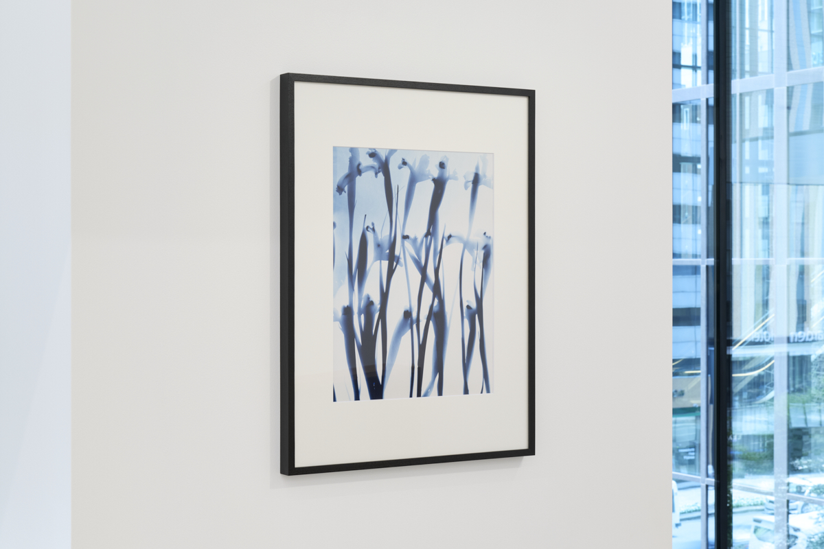 京橋会場では、1980年以降継続して取り組まれてきたフォトグラム作品に焦点を当てます。花や動物、小さな生物、そして人間のシルエット、本展で紹介する「The Kitten Papers」(1992年)では、夜中の子猫の生命の気配を宿らせています。光と影のコントラストによって引き出される存在感は、日本的なか弱さと儚さの美学とも共鳴し、東洋と西洋の文化が調和した、杉浦ならではの表現スタイルを物語ります。初期のフォトグラムである「Attenuated Head」(1986年)では、砂をまいて細長い頭部を表現するなど、様々な材料で頭、身体を描き、1980年代初期は抽象のイメージと融合させました。1989年以来、花が多く主題に選ばれ、本展では並列して展示されているボタニカス、切花、スタックスなどのシリーズが生まれました。