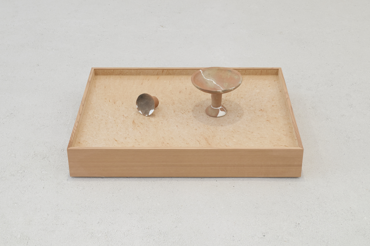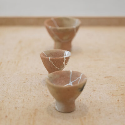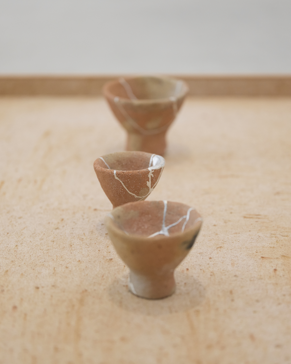 海辺の集落である京丹後・間人(たいざ)で2020年より活動するアートプロジェクト「あしたの畑」での展示企画を通して出会った、同地に残る墳墓や伝承、受け継がれてきた自然と人との営み。これらは、作家自身が生活と創造の地として選んだ南丹・美山で培ってきた時間や経験と折り重なり、2023年、「丹(に)」と題した作品へと昇華され、丹後古代の里資料館にて、弥生時代後期の遺物とともに空間インスタレーションとして展開されました。同資料館で出会った墳墓から出土した丹の土を契機とした同作品は、海と時を越えて人と人とをつないできた、創造の歴史を巡るプロジェクトへと発展していきます。かつて海を渡り、同地にたどり着いた人々が見出した「美」とは何だったのか。そして、今、自分たちが海の向こうである未知の世界に見出そうとする「美」は、それとどこかで響きあっているのだろうか―その問いは、ひとつひとつの作品から空間全体へと広がり、鑑賞者、訪問者がその空間に身を置くことや、その場で過ごす時間そのものを創造する挑戦へと繋がっていきました。