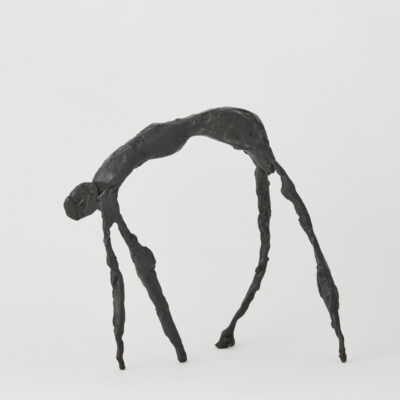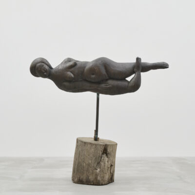 1960年代末にはメキシコに滞在して教鞭をとり、現地の生活や文化などからさまざまな影響を受けて造形意識を変化させていきます。日本帰国後の掛井の作品には、西洋的理想美の規範から解放されるかのような人体表現や形態の単純化、キリスト教的主題から離れるといった変化が見られます。のち1970年代後半から80年代初期に制作された女性像『南アルプス』(1978年)や『安曇野』(1980年)では、ふたたび人物の顔のディテールがあらわれ、身体の量塊やボリュームの表現は実体感にあふれています。泰然と横たわる山脈、あるいはゆるやかに浮遊する雲のようにも見えるそれらの姿は、作家が着想源とした自然風景の豊かさやそこに流れる時間を思わせます。一方、対照的にそぎ落とされた量感表現と、手足を細長く引き伸ばした形態が特徴的な「人間の問題」シリーズは1984年から85年に制作されました。本展で展示される『空の橋』(1985年)はそのエスキースとしてつくられたもので、「私は夢を見た。人間が二本の足で立つことを止めて、四本の足で這って歩いている美しい人間の姿を見た。」という作家の言葉からは、彼の考える美のひとつの形がここに提示されていると考えられます。