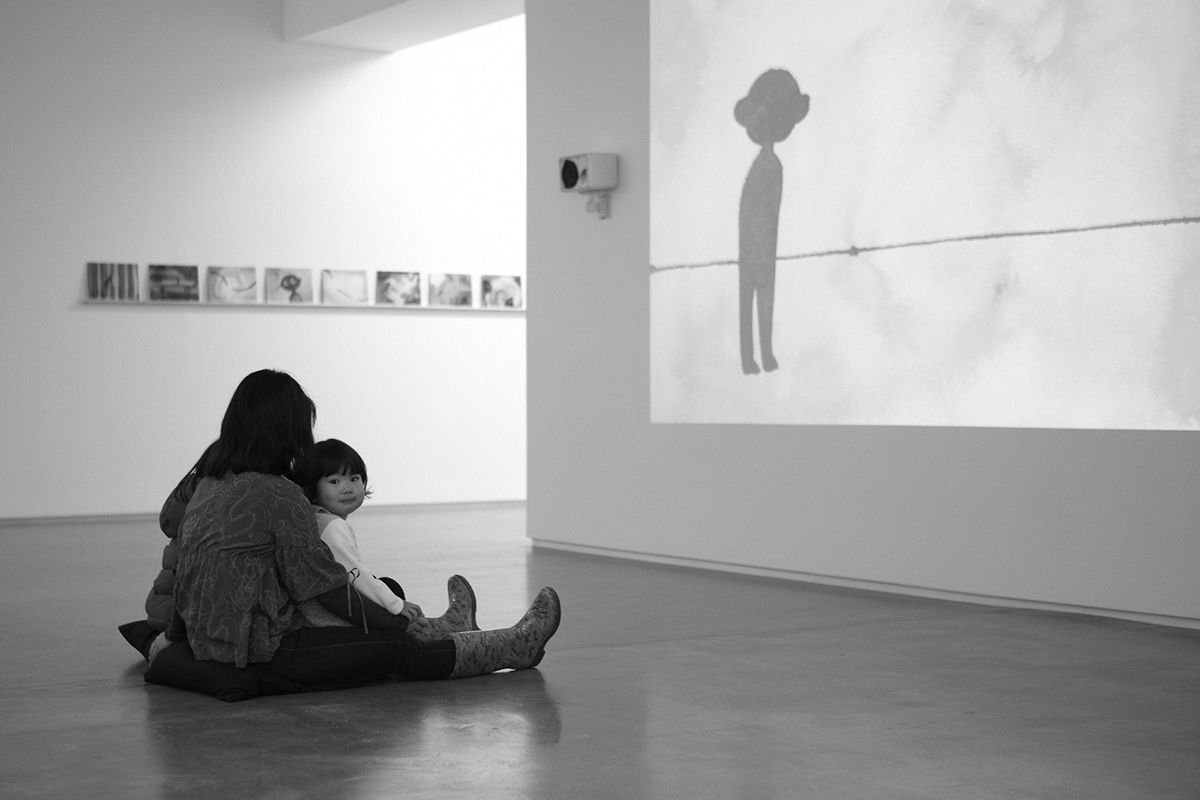 展示期間中スライド上映される本作品は、ギャラリーという環境に子どもたちを受け入れる際のアート作品の見せ方を再検討するかのようです。「The Kid Who Loved Being Bored」(作:マリオ・ガルシア・トレス/イラスト:平澤朋子/音楽:グスタボ・マウリシオ・エルナンデス・ダビラ(キエロ・クラブ))