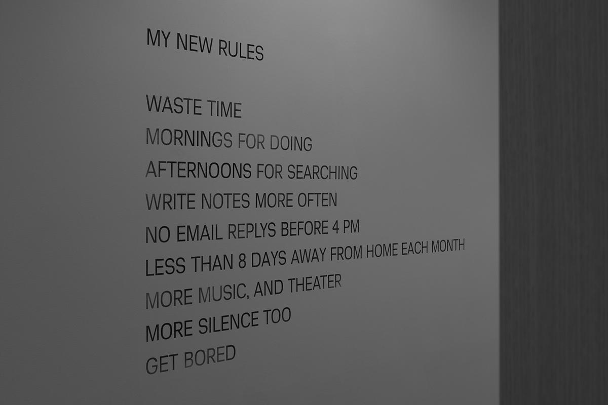 今回の展示作品の中心となる「The Kid Who Loved Being Bored」は、退屈であることの素晴らしさとその利用方法を子ども向けの絵本という形式で表現した短いエッセイです。物語では、主人公であるチョコが光線のなかで過ごすわずかな時間に経験する心の動きと発見が描かれ、想像力による解放の可能性が提示されます。